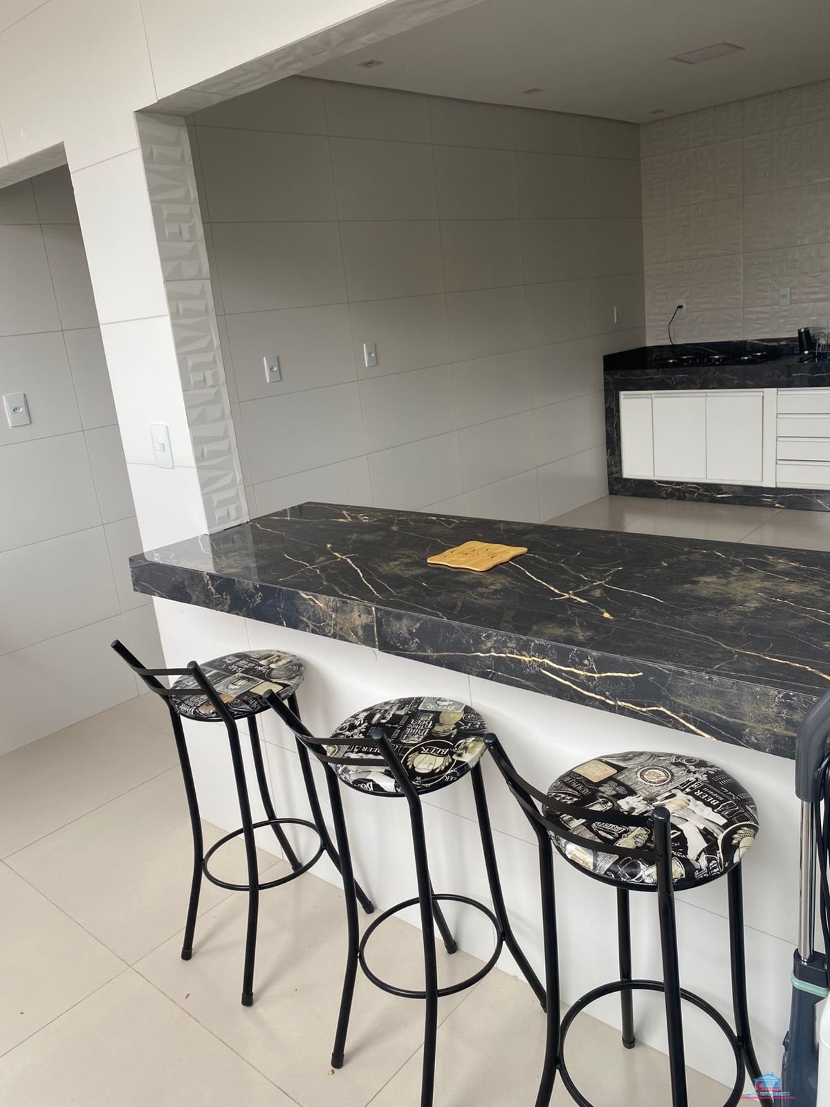 02 quartos sendo 01 su?te com closet, banheiro social, cozinha ampla com arm?rios planejados, ?rea de servi?o e garagem para 04 carros.