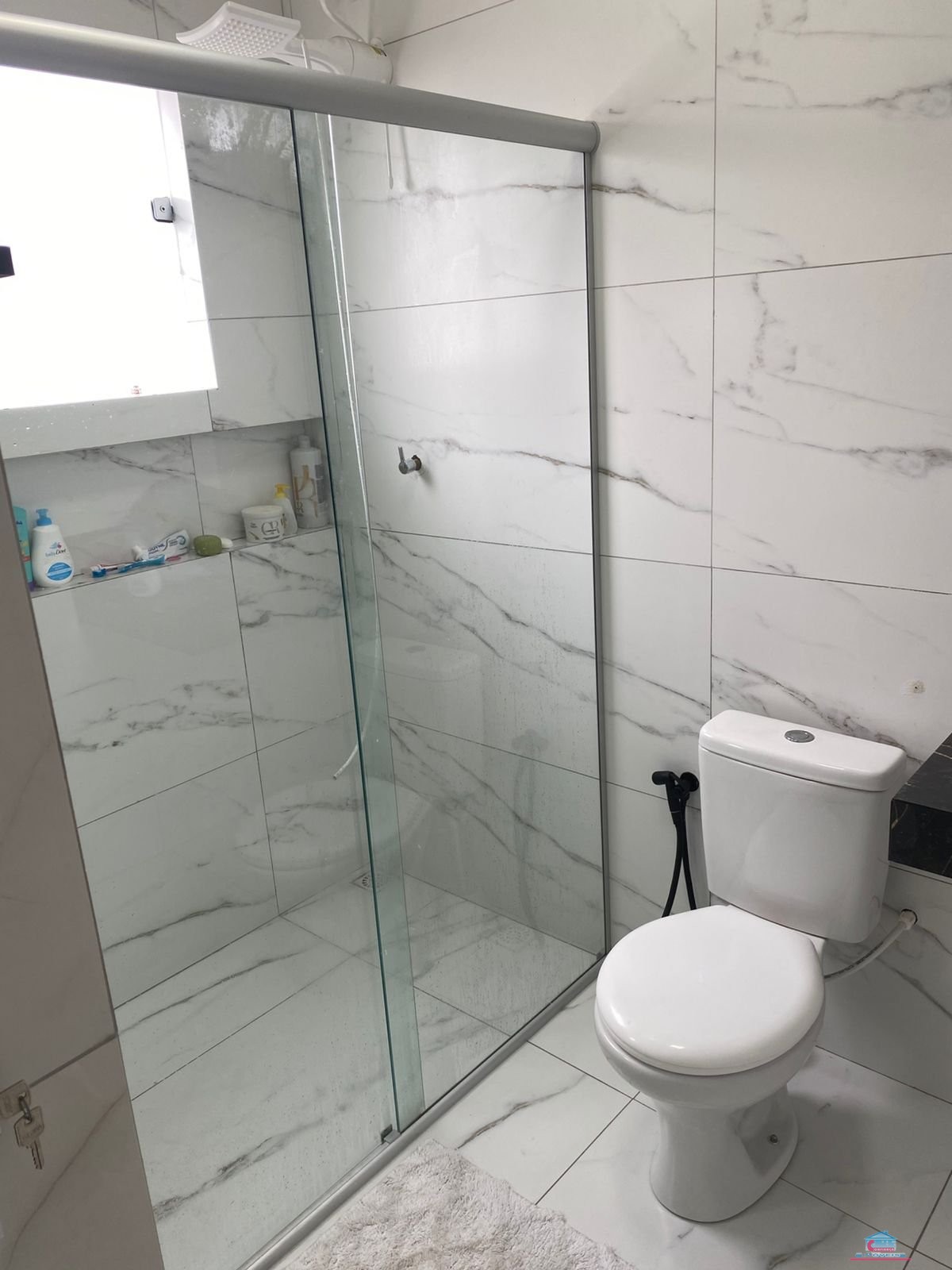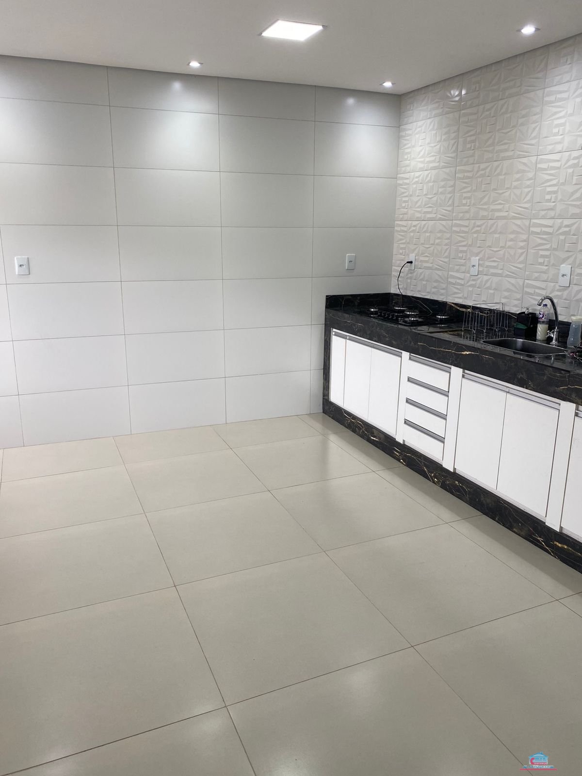02 quartos sendo 01 su?te com closet, banheiro social, cozinha ampla com arm?rios planejados, ?rea de servi?o e garagem para 04 carros.